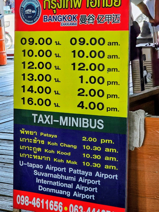누안팁 선착장에서 방콕 및 주변 도시로 가는 교통편 시간표