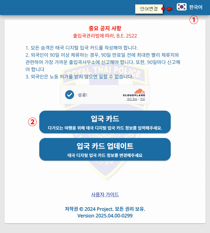 2025년 5월1일부터 태국 입국 전에 전자입국카드(TDAC;Thailand Digital Arrival Card)를 작성하여야 합니다.