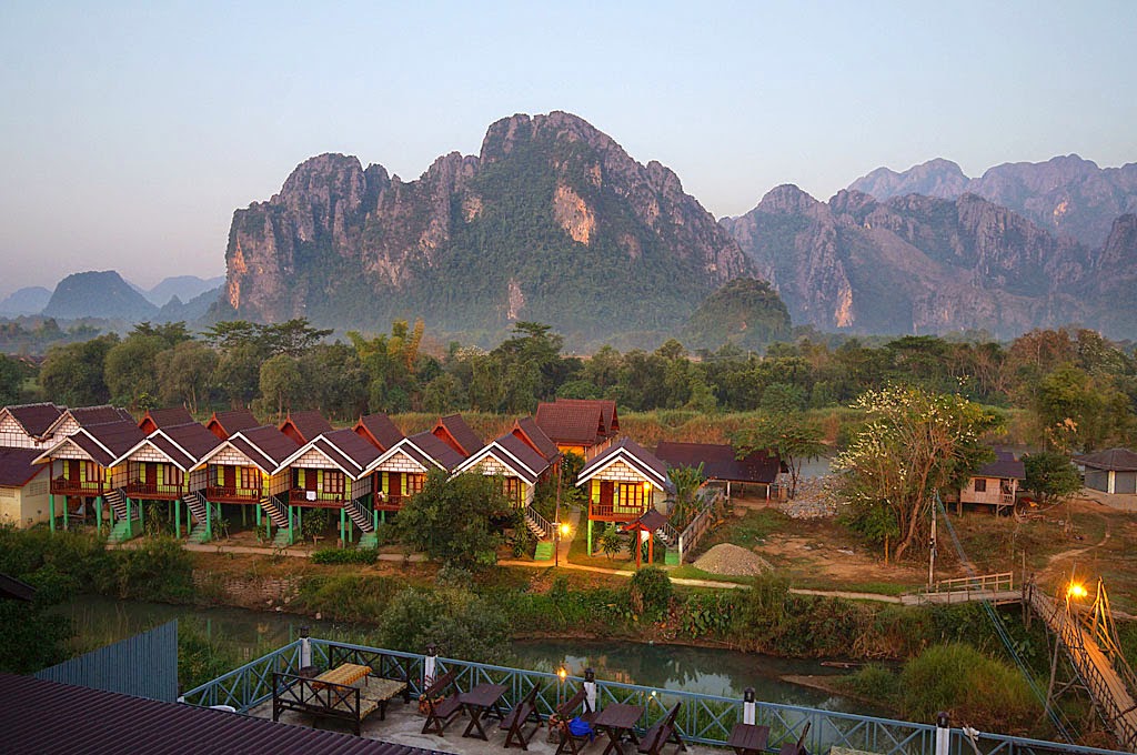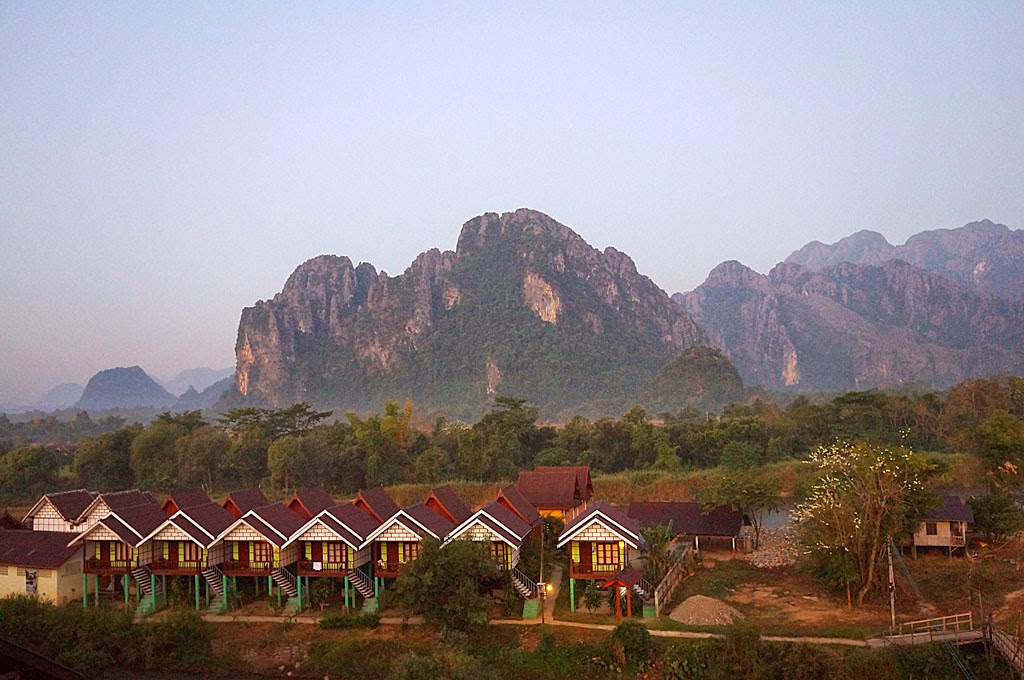 방비엔에서 3박을 했는데 같은 숙소에 계속 묵었습니다. 베짱이님의 여행블로그에서 소개가 되었던 도몬 하우스 309호에서 촬영한 사진들입니다. 마운틴 리버 뷰가 너무 좋아서 아침에 일어나서 테라스에 나가면 매일 와우~ 했던 곳입니다. 가장 마음에 들었던 숙소입니다. 원래는 24만킵 정도에 1박인데 성수기라서 가격이 많이 오른 편입니다. 30만킴(39000원)에 1박을 했습니다. 정말 추천할 만한 숙소입니다. ^^