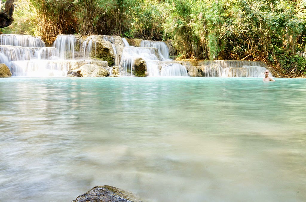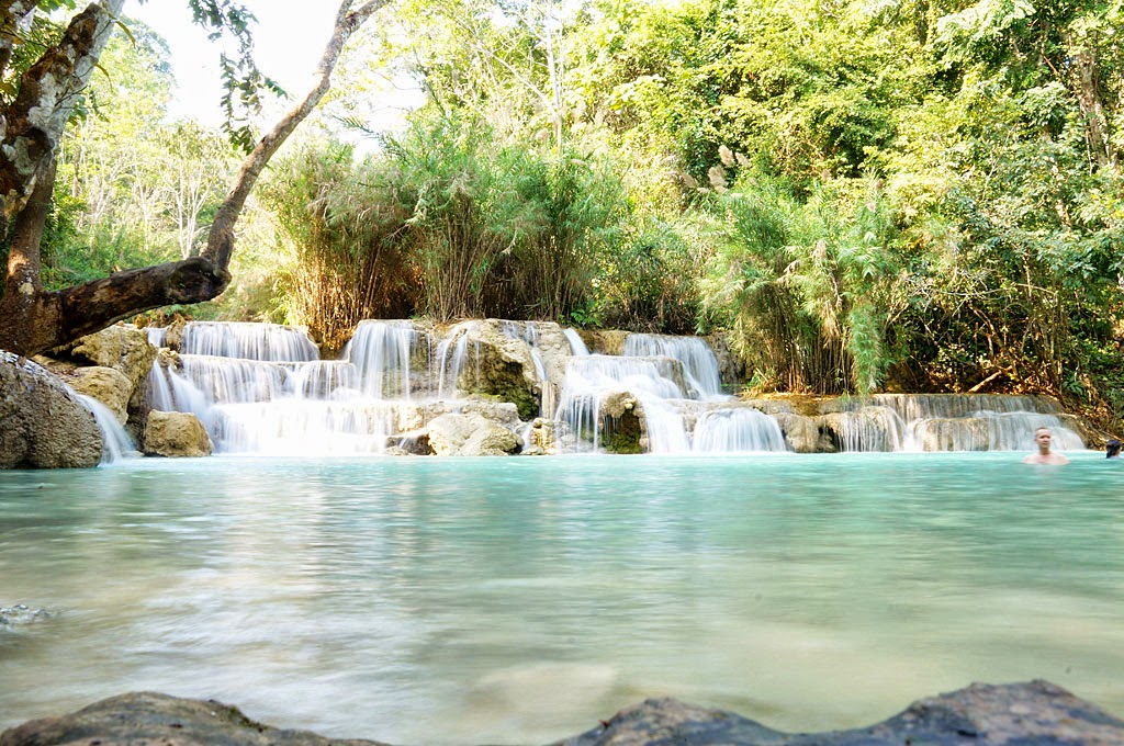 루앙프라방에서 간 꽝시폭포입니다. 여기로 석회암 형태의 제질이라 물빛이 에메랄드, 블루 형태입니다. 건기(겨울)이지만 수영하기에 점심 시간이라면 무난합니다. 꽝시폭포는 한국인보다는 유러피안들이 정말 많았습니다.