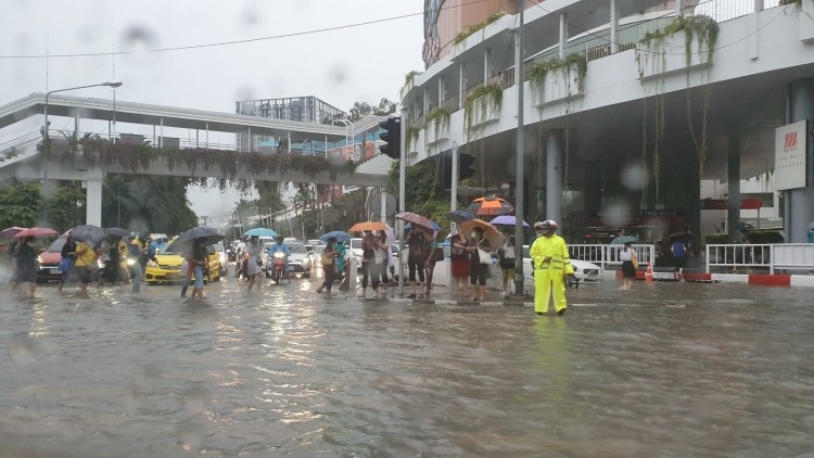 방콕의 교통경찰은 오늘 오전 2시쯤부터 폭우로 인해 광범위한 홍수가 발생하자 수도의 도로를 통제하라는 지시를 받고 있다. 폭우가 많은 지역에 영향을