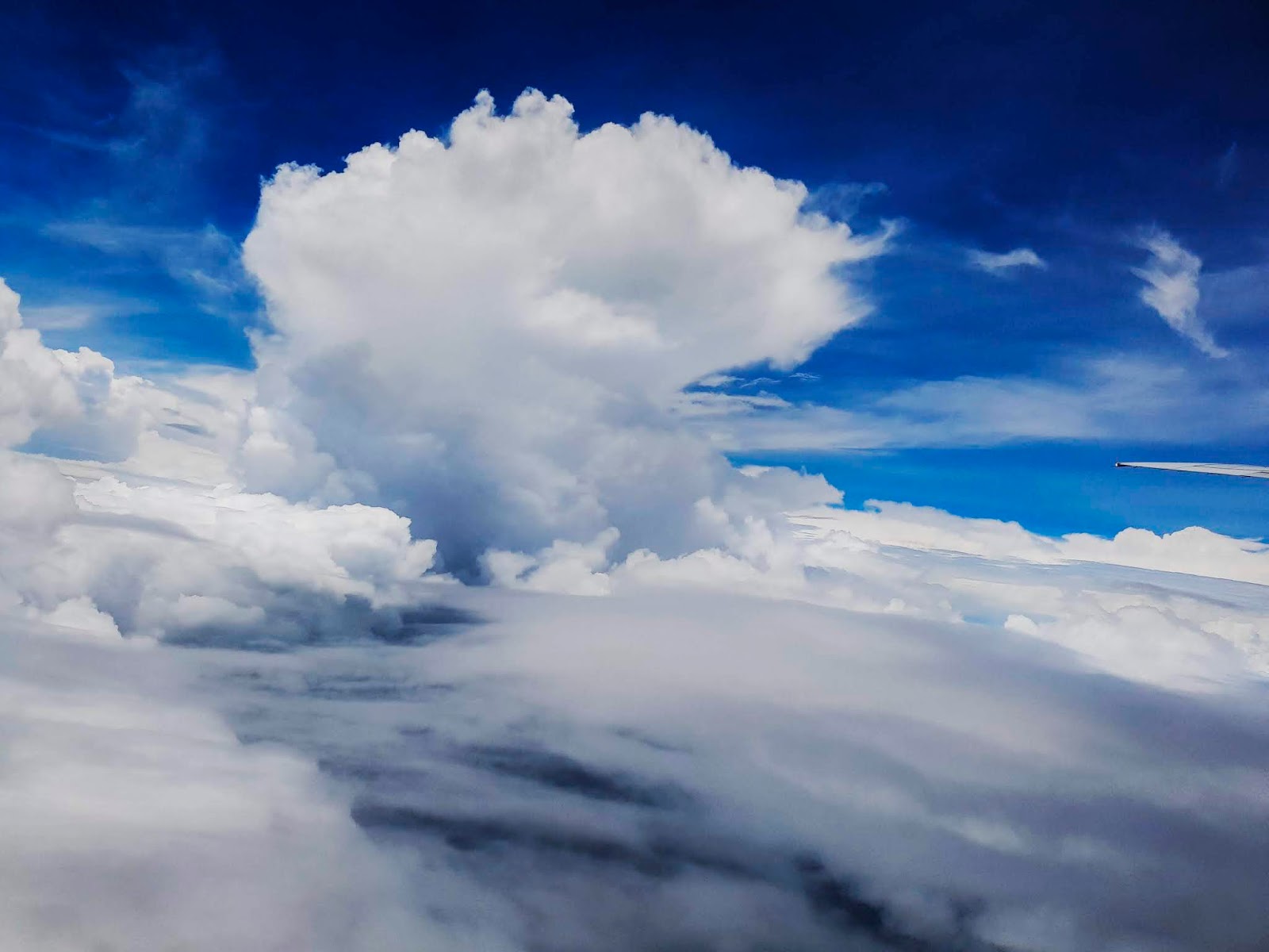 비행기에서 보는 구름은 땅에서 보는 구름과 다르다. 땅에서 구름을  보기 위해 고개를 들면 그것은 멀리 떨어져 있지만 비행기 창을 통해 바다보는 구름은 땅에서 보는 것과 다른 고요함이 깃들어 있다. 고요함 속에서 느껴지는 구름을 관조하게 된다면 평소보다 더 푸른 하늘을 마주하게 될 수 있어 더 고요해 지는지도 모른다. 시끄러운 비행기 속에 있지만 나는 깊은 숲속에 있고, 어느 조그마하고 한적한 암자의 툇마루에 앉아 있는 것은 아닐까 하는 착각을 하게될 때 비로소 여행의 출발에 대한 불안한 마음도 안정을 찾아가게 된다.