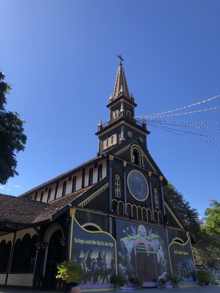 이 동네 천주교 교세가 강하다. 타 종교, 특히 불교 사찰도 곳곳에서 만날 수 있지만 읍내 큰 구역이 천주교 동네다. 위는 랜드마크인 목조 성당인데 공구리가 없던 시절에 나무로만 지었다지만 세월 탓인지 지금은 시멘트로 보강되었다.
