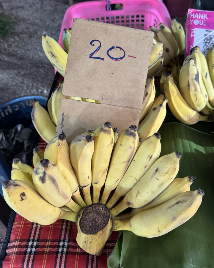 어제 목요시장에서 일반 바나나를(델몬트 급) 정찰제로 두다발70밧에 구매하며